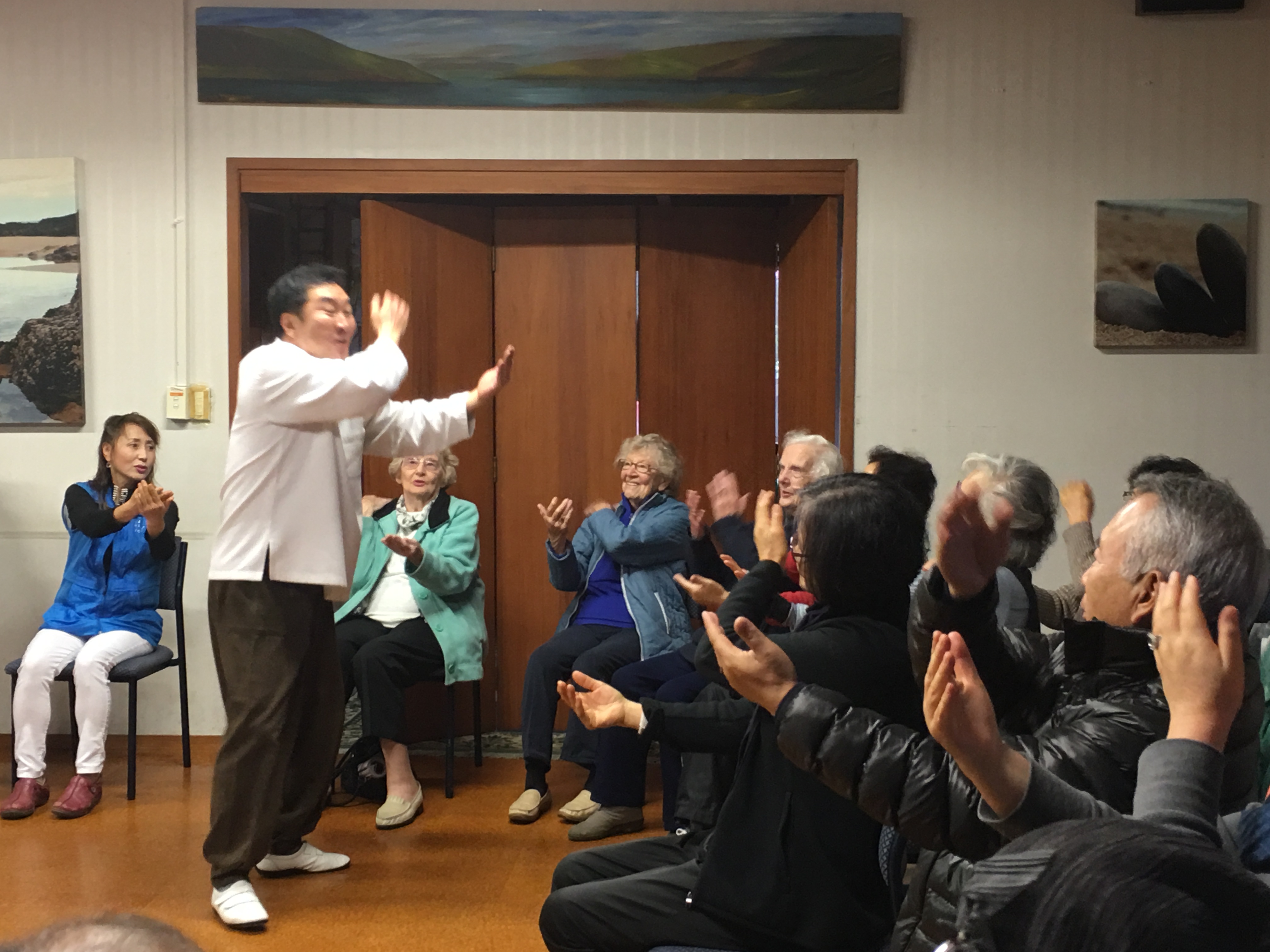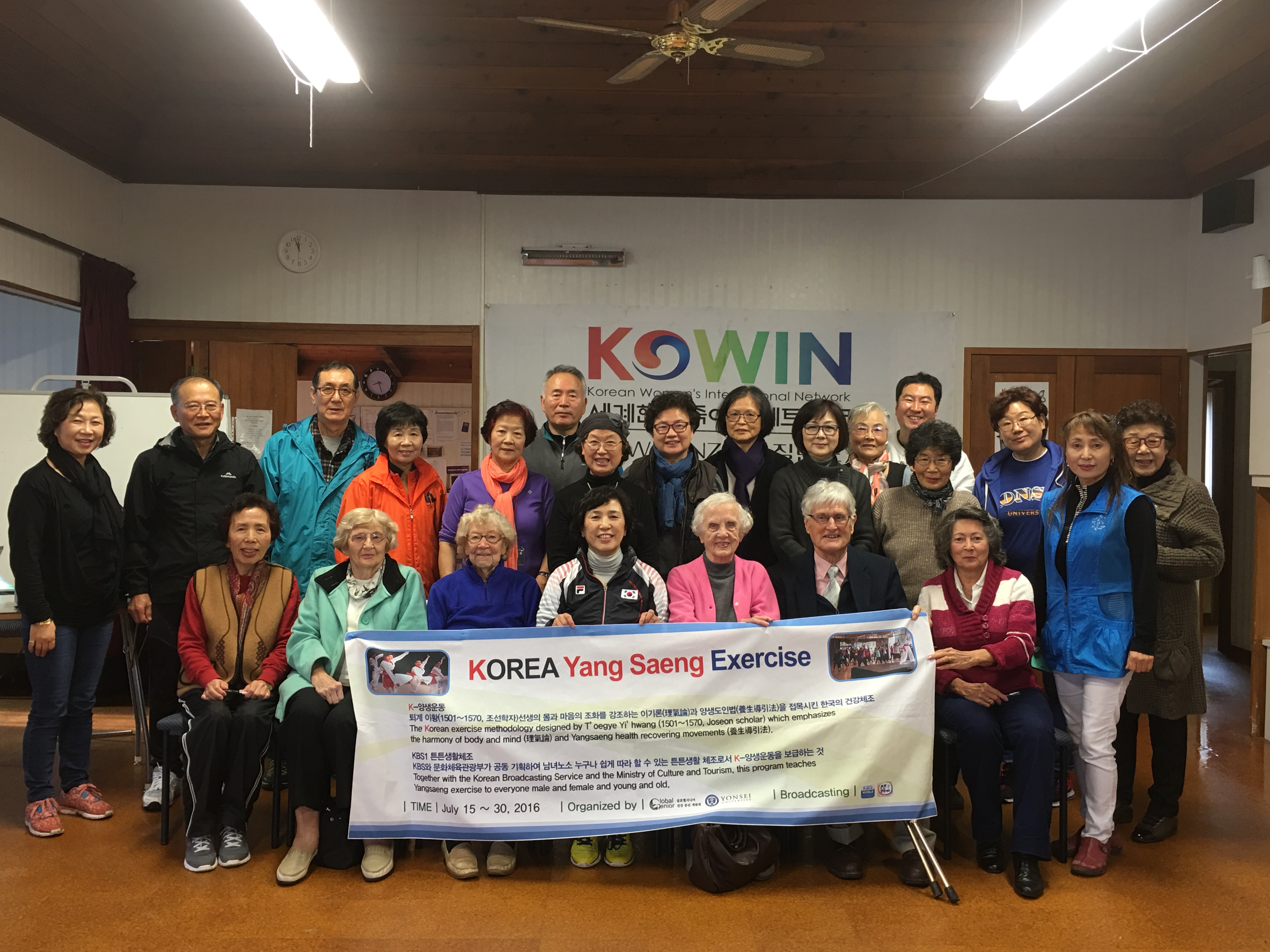 뉴질랜드 현지노인분들과 한인노인분들이 함께 K-양생체조 수업 후 기념사진