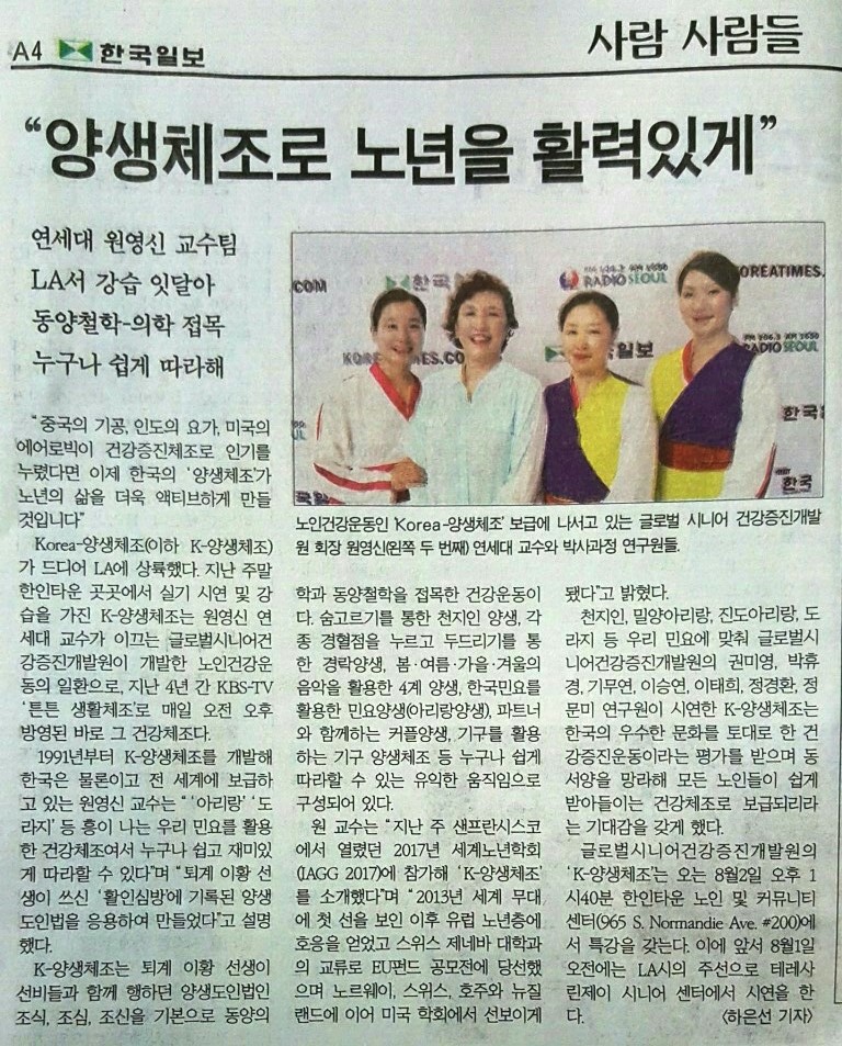 [미주중앙일보] 한국 고유 '양생체조 LA 상륙